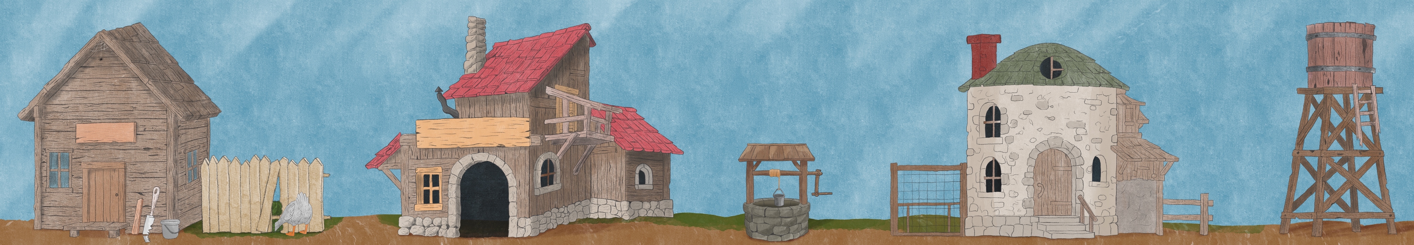 Last time, I was so excited to see the watercolor village come alive, finally — roofs, fences, a goose somewhere in the background pretending to help.